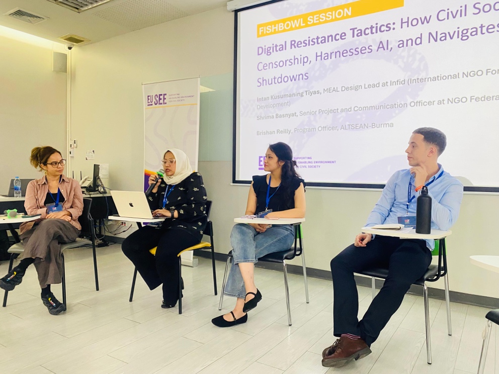 Berdasarkan tantangan global tersebut, pada perhelatan ICSW 2025, EU SEE menyelenggarakan side-event yang berjudul “Digital Resistance Tactics: How Civil Society Evades Censorship, Harnesses AI, and Navigates Internet Shutdowns”. Side-event tersebut bertujuan untuk membahas strategi dan taktik perlawanan masyarakat sipil untuk menyikapi represi digital. Pada kesempatan yang sama, EU SEE juga memperkenalkan mekanisme Peringatan dan Pemantauan, untuk melacak tren baru serta peringatan terhadap ancaman utama terhadap lingkungan pendukung masyarakat sipil, termasuk akses terhadap lingkungan digital aman dan terbuka.