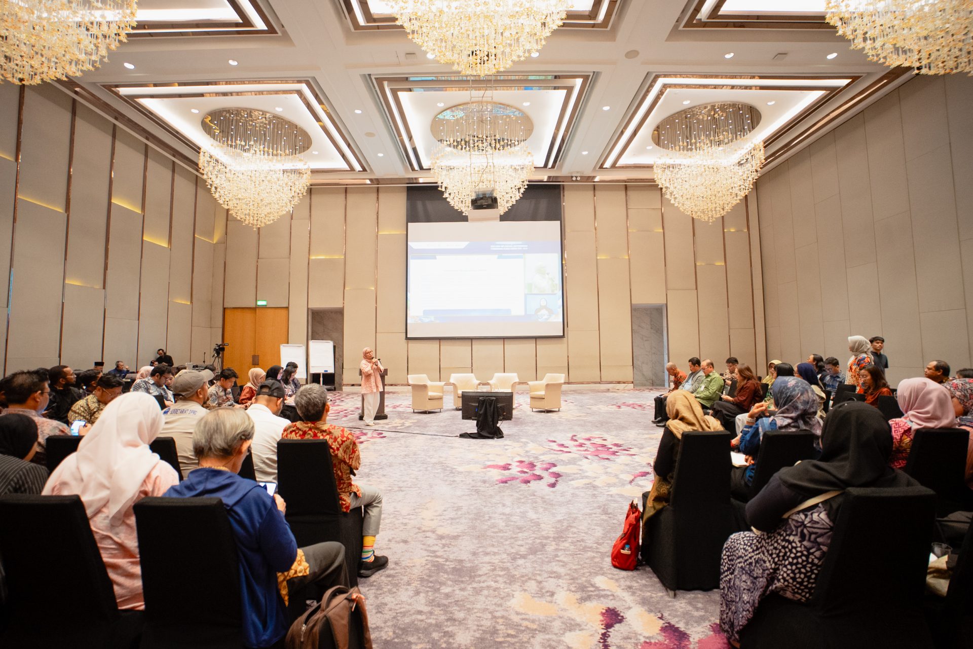 Puncak diskusi terletak pada sesi kedua opsi pembiayaan inovatif. Endah Tri Kurniawati dari BPDLH memberikan gambaran komprehensif tentang ekosistem pembiayaan inovatif. BPDLH mengelola dana USD 1,72 miliar melalui instrumen blended/creative finance, termasuk grant, loan, dan endowment. Sektor utama meliputi AFOLU & Sustainable Ecosystem (REDD+, FOLU Net Sink, TERRA, Mangrove Rehabilitation), Just & Affordable Clean Energy (PLTS Atap, LCDI), Circular Economy & Zero Waste Emission (SGAC Seed Banyumas, DNS), serta Climate & Disaster Resilience (Catalytic Fund, Disaster Risk Finance and Insurance/DRFI). Mekanisme derisking facility dan credit guarantee dirancang untuk menarik investasi swasta dengan mengurangi risiko, sementara safeguards memastikan kepatuhan terhadap regulasi, kondisi kerja, efisiensi sumber daya, kesehatan masyarakat, konservasi biodiversitas, hak masyarakat adat, dan kesetaraan gender.